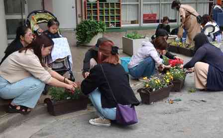おはようございます。 昨日は、希望保護者に向けてのお弁当給食の試食会を開きました。6月から週1回希望者を対象に行われるものです。昨日は水曜日だったので、こどもたちはお弁当を食べずに午前帰りです。保護者の方のみ、ホールで早目の昼食会でした。こどもたちはドアの隙間から見ていたり、「あ~お腹すいたなぁ」と言っていたりする子もいたようです。弟妹の子がパクパクとわかめご飯を食べていたのが微笑ましかったです! 少し降園までに時間があったのでプランターの整備のお誘いをしたら、快く手伝ってくださった保護者の方々です。ありがとうございました!プランターの雑草も抜いてくださり、感謝です。 よい一日を【添付ファイル】