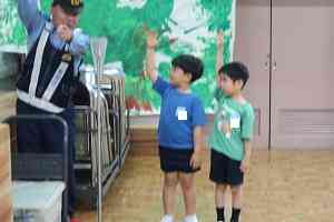 おはようございます。 昨日は、深川警察署の方をお招きし、交通安全についてご指導いただきました。ホールに模擬横断歩道を作り、歩きます。そして、年長組は、雨の日の想定でも行い、傘をもって歩くことも取り入れました。小学校に行くと、荷物をもち、傘をさして登校するのです。普段から、自分の荷物は自分でもつことをはじめ、自分のことは自分ですることが必要ですね。こどもたちは、よく聞いて取り組んでいました。年中組は年長組の手本を見て、模擬横断歩道を歩いていました。自分の目で信号を見ることも日々の生活の中でできますね。大人が意識していくことで、こどもたちが自然に身に付けていていくことがあります。保護者の方もご参加いただきありがとうございました。 追伸 嬉しかったことがあります。保護者の方が自分の椅子だけではなく、他の方の椅子も片付けてくださったり、声を掛けて一緒に場を整えてくださったりしている姿を見かけました。なんだか、朝からほんわかした気持ちになりました。お互いに気遣う、率先して声を掛けるなど、行動に移せるって素敵ですね。ありがとうございます。私も見習いたいと思います。 よい一日を【添付ファイル】