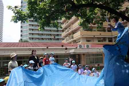 おはようございます。 昨日は、本園にあるアンズをみんなで収穫しました。高いところになっているので、手が届きません。そこで、ビニールシートを使い、誰かが木の枝をゆするという作戦を決行しました。主任と主事が枝をゆする係、こどもたちと他の職員がビニールシートもちにしました。面白かったです!こどもたちは、カラー帽子を被り、上から落ちてくるアンズをシートでキャッチしました。下にいる人と枝をゆする人とのコラボです。キャーキャー言いながらアンズが落ちてくる様子を楽しみました。元加賀幼稚園のアンズ大収穫の巻でした。シートからアンズの重みを感じた一時でした。 よい一日を【添付ファイル】
