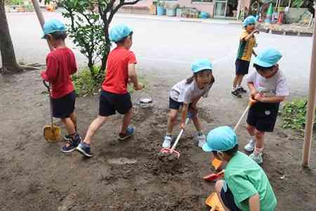 おはようございます。 昨日は、本日予定している池(ビオトープ)作りのための下見として、どのくらいの固さか確かめようと、シャベルで土を掘ってみました。なんとはなしに、1人で始めたのですが、こどもたちがやってきて、どんどん、穴掘りブームができました。改めて、こどもたちの姿を見て感心したことがあります。まず、キャッチ能力がすごいこと。そして、どこまで掘るのか、エリアを作ろうと言ってきたこと、工事中だからと三角コーンで、囲い始めたこと、土が固いから水を入れようと自分達でバケツを持って入れはじめたこと、水を入れる時も、周りの人にかからないように、声を掛けていること、根っこがでてくるとどこを掘ったらよいか予測していること、大きなシャベルの扱いも上手くなっていることなどなど、他にもたくさん育っているなと思うことがありました。何よりも嬉しいのがこどもたちがわくわくしながら、興味をもって穴を掘っていることです。わくわくしながら主体的に行動していることがすごい!!! 私もこんなに穴掘りが楽しいなんて!と思った次第です。出張前の一時、爽快な気分で出掛けられました。今日もこどもたちと約束しているんです。穴掘り、頑張ります! ちなみに、写真に写っていないお子さんも携わっています。たくさんのお子さんが関わっていたんですよ! よい一日を【添付ファイル】