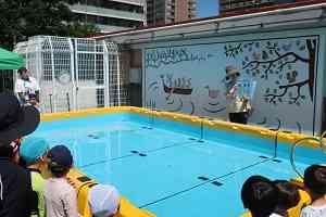 おはようございます。 昨日はプール開きでした。この写真は、プールに入る前の約束を聴いているところです。プール遊びは楽しいけれど、プールの約束を守らないと安全に遊べません。その部分を担任たちがお話していると、流石、年長組です。「守ります」と頼もしい返事が返ってきました。その後のプールの様子を見ていても、約束を守りながらも、体いっぱい、水に親しんでいました。体をタオルで拭くことも、とても上手になっていましたので、感心しました。これからの季節、様々工夫しながら楽しみます。 水って気持ちよい。水って楽しい。こんなことができるようになったなどの気持ちを味わえるようにしていきたいです。 よい一日を【添付ファイル】