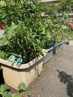 おはようございます。 年長組のこどもたちが夏休み前に育てていたピーマンです。まだ花が咲いています。そして、よく見ると、赤色が見えます。ピーマンの実が赤色に変わっているのです。オレンジ色のゴーヤも発見しました。今日はどんな発見があるのかなと、わくわくします。 よい一日を